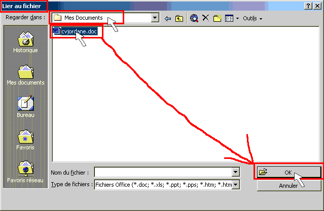 Choisissez votre fichier cvjordane.doc, et cliquez sur OK.Vous
