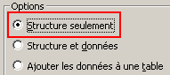 pouvez cliquer sur "Structure seulement", ça aura pour effet