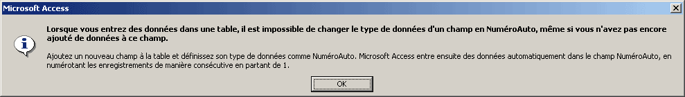 Que va dire Access ? Eh bien il ne va pas du tout être d'accord ! Essayez