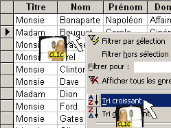 Oui : Essayez ! La marche à suivre est toujours la même : Vous cliquez avec le bouton droit de la souris sur n'importe quel enregistrement de n'importe quelle colonne, et vous choisissez "Ordre croissant" ... ou "Ordre décroissant"... Si vous triez par les salaires du plus pauvre au plus richie, demandez un tri décroissant de la colonne des salaires...