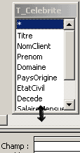 sur T_Celebrite (Vous savez comment faire maintenant). Placez les champ Prenom,