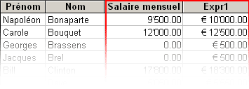 (Prime), et un re-calcul dans une autre colonne de cette prime (SalaireAvecPrime).