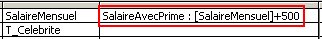Bien, maintenant, nous allons voir comment faire un calcul DIRECTEMENT dans le formulaire. Admettons que nous ayons créé notre formulaire directement sur la table T_Celebrite, et que nous n'avons PAS de champ calcule SalaireAvecPrime, mais nous en avons quand même besoin !