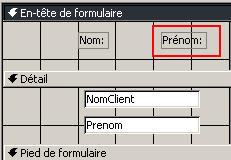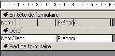 de formulaire", mais PAS le champs NomClient, comme ceci :