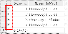 Remarque : Il est possible que suivant la configuration de la structure de votre base de données, Access ne sache pas quelle sous-table vous montrer avec les petits +. Si vous ne comprenez pas bien ce que je veux dire par là, attendez de vous être cassé la tête sur le 2ème exercice de cette leçon, et ça vous sautera aux yeux. Quand vous aurez eu "l'illumination", vous pourrez alors utiliser le menu Insertion/Sous-feuille de données