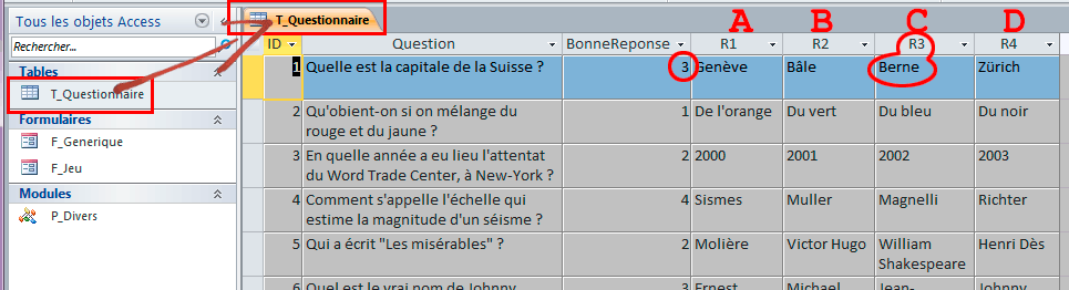 Les questions sont très faciles à changer puisqu'elles se trouvent toutes dans l'unique table T_Questionnaire.