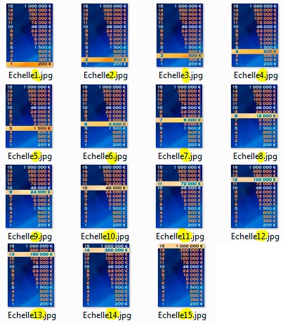 Parmi les fichiers que vous avez téléchargé au début de ce didacticiel, il y a 15 fichiers images appelées Echelle1,.jpg, Echelle2.jpg, etc. jusqu'à Echelle15.jpg :