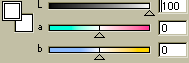 Le spectre a est un dégradé qui va du vert au rouge, et le spectre b est un dégradé qui va du bleu au jaune, les 2 spectres passant par le blanc dans le cas ou L vaut 100.